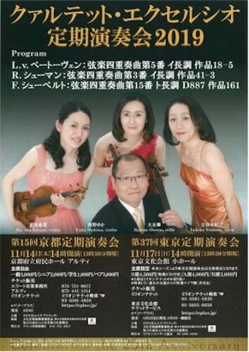 エク京都定期予習用PL作成。 クァルテット・エクセルシオ第15回京都定期演奏会のチケット情報 - イープラスベートーヴェン:弦楽四重奏曲第5番 イ長調 作品18-5シューマン:弦楽四重奏曲第3番 イ長調 作品41-3シューベルト:弦楽四重奏曲第15番 ト長調 D887 作品…